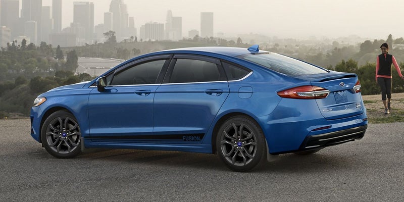 The base Fusion is the S trim, which has 16-inch steel wheels, automatic halogen headlights, and LED taillights. The SE bumps you up to 17-inch alloy wheels and adds the option for more technology. Take a look at the SEL for LED headlights, keyless entry, and 18-inch alloy wheels, or the Titanium for even larger 19-inch alloy wheels, dual exhaust tips, and fog lights. A sunroof comes standard with the Titanium and is an available option for all of the lower trims.