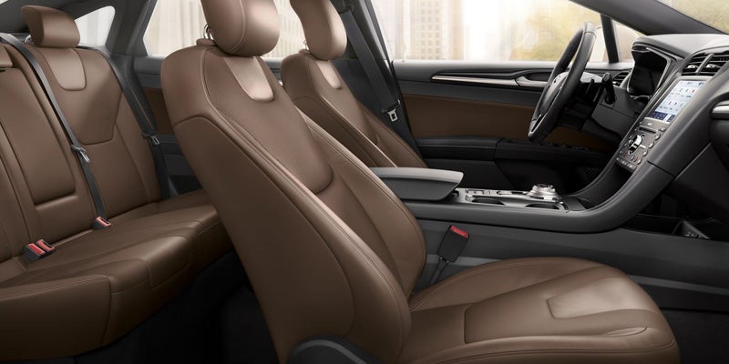 The Fusion is a mid-size car and will comfortably fit five people. The seats are supportive, even on long road trips, and the cabin has a nice look with good quality materials. Stepping up from the base to the SE gets you power-adjustable front seats and a center armrest that folds down. The SEL adds driver-seat memory functions and heated front seats. Choose the high-end Titanium for the convenience of heated and ventilated front seats.