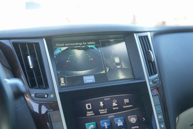 This 2014 INFINITI Q50 Sport in Graphite Shadow comes with the following features: 3.7L V6 DOHC 24V 7-Speed Automatic with Manual Shift RWD Deluxe Touring Package (60/40 Split-Folding Rear Seats, Around View Monitor w/Moving Object Detection, Auto-Dimming Outside Mirrors w/Reverse Tilt-Down, Direct Adaptive Steering, Dual Occupant Memory System For Driver's Seat, Maple Wood Trim, Power Tilt & Telescopic Steering Column, and Rain-Sensing Front Windshield Wipers), Navigation Package (INFINITI InTouch Navigation System), Spare Tire Package (Jack Kit), Q50 Sport, 4D Sedan, 3.7L V6 DOHC 24V, 7-Speed Automatic with Manual Shift, RWD, Graphite Shadow, Stone Leather, 14 Speakers, 4-Wheel Disc Brakes, ABS brakes, Activation Disclaimer, Air Conditioning, Alloy wheels, AM/FM radio: SiriusXM, Anti-whiplash front head restraints, Auto-dimming Rear-View mirror, Automatic temperature control, BOSE Centerpoint Simulated Surround, Brake assist, Bumpers: body-color, CD player, Compass, Delay-off headlights, Driver door bin, Driver vanity mirror, Dual front impact airbags, Dual front side impact airbags, Electronic Stability Control, Floor Mats, Four wheel independent suspension, Front anti-roll bar, Front Bucket Seats, Front Center Armrest, Front dual zone A/C, Front fog lights, Front reading lights, Fully automatic headlights, Garage door transmitter: HomeLink, Heated door mirrors, Heated front seats, Heated Sport Front Seats, Illuminated entry, Illuminated Kick Plates, INFINITI Studio on Wheels by Bose, Leather Shift Knob, Leather steering wheel, Leather-Appointed Seats, Literature Kit, Low tire pressure warning, Occupant sensing airbag, Outside temperature display, Overhead airbag, Overhead console, Panic alarm, Passenger door bin, Passenger vanity mirror, Power door mirrors, Power driver seat, Power moonroof, Power passenger seat, Power steering, Power windows, Radio data system, Radio: AM/FM/CD w/MP3 Playback Capability, Rear anti-roll bar, Rear reading lights, Rear seat center armrest, Rear window defroster, Remote keyless entry, Security system, Speed control, Speed-sensing steering, Speed-Sensitive Wipers, Sport steering wheel, Steering wheel mounted audio controls, Tachometer, Telescoping steering wheel, Tilt steering wheel, Traction control, Trip computer, Turn signal indicator mirrors, Variably intermittent wipers, and Wheels: 19 Aluminum-Alloy Sport.