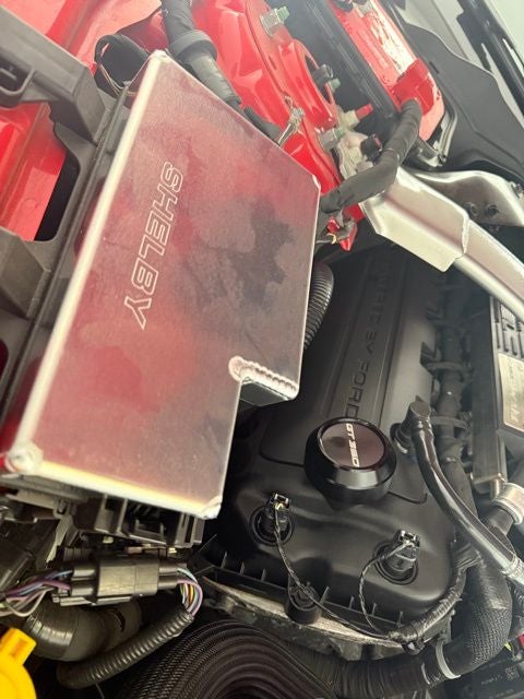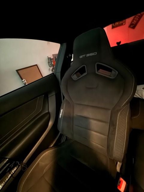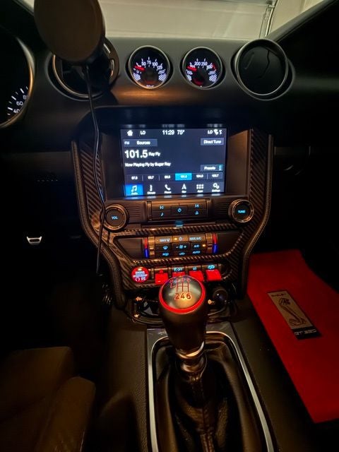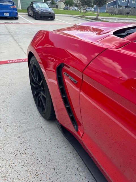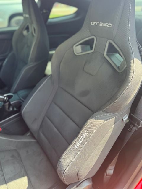 This 2017 Ford Mustang Shelby GT350 in Race Red comes with the following features: 5.2L Ti-VCT V8 Tremec 6-Speed Manual RWD Electronics Package (AM/FM Stereo & CD Player, Dual-Zone Electronic Automatic Temperature Control, SiriusXM Satellite Radio, SYNC 3 Communications & Entertainment System, Turn Signal Mirrors, Universal Garage Door Opener (UGDO), and Voice-Activated Touch-Screen Navigation System), GT350 Equipment Group 900A, 4-Wheel Disc Brakes, 6 Speakers, ABS brakes, Air Conditioning, Alloy wheels, AM/FM radio, AM/FM Stereo/Single CD Player, Auto-dimming Rear-View mirror, Block heater, Brake assist, Bumpers: body-color, Compass, Delay-off headlights, Driver door bin, Driver vanity mirror, Dual front impact airbags, Dual front side impact airbags, Electronic Stability Control, Emergency communication system: 911 Assist, Exterior Parking Camera Rear, Four wheel independent suspension, Front anti-roll bar, Front Bucket Seats, Front Center Armrest, Front reading lights, Fully automatic headlights, High-Intensity Discharge Headlights, Illuminated entry, Knee airbag, Low tire pressure warning, Occupant sensing airbag, Outside temperature display, Over-the-Top Racing Stripe, Overhead airbag, Overhead console, Panic alarm, Passenger door bin, Passenger vanity mirror, Power door mirrors, Power steering, Power windows, Radio data system, Rear anti-roll bar, Rear window defroster, RECARO Cloth/Miko Suede Sport Seats, Remote keyless entry, Security system, Speed control, Speed-sensing steering, Speed-Sensitive Wipers, Split folding rear seat, Spoiler, Sport steering wheel, Steering wheel mounted audio controls, SYNC Communications & Entertainment System, Tachometer, Telescoping steering wheel, Tilt steering wheel, Traction control, Trip computer, Variably intermittent wipers, Voltmeter, and Wheels: 19 x 10.5 Fr/19 x 11 Rr Ebony Black.