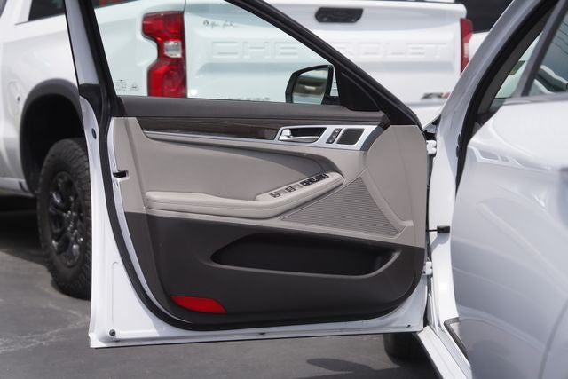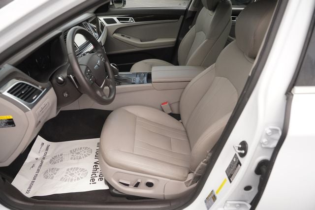 This 2017 Genesis G80 3.8 in Casablanca White comes with the following features: 3.8L V6 DGI DOHC Dual CVVT 8-Speed Automatic with SHIFTRONIC RWD G80 3.8, 4D Sedan, 3.8L V6 DGI DOHC Dual CVVT, 8-Speed Automatic with SHIFTRONIC, Casablanca White, Gray w/Leather Seating Surfaces, 12-Way Power Heated Front Bucket Seats, 4-Wheel Disc Brakes, 7 Speakers, ABS brakes, Air Conditioning, Alloy wheels, AM/FM radio: SiriusXM, Android Auto & Apple CarPlay, Anti-whiplash front head restraints, Auto High-beam Headlights, Auto tilt-away steering wheel, Auto-dimming door mirrors, Auto-dimming Rear-View mirror, Automatic temperature control, Bodyside moldings, Brake assist, Bumpers: body-color, CD player, Compass, Delay-off headlights, Driver door bin, Driver vanity mirror, Dual front impact airbags, Dual front side impact airbags, Electronic Stability Control, Emergency communication system: Genesis Connected Services, Exterior Parking Camera Rear, Four wheel independent suspension, Front anti-roll bar, Front Bucket Seats, Front Center Armrest w/Storage, Front dual zone A/C, Front reading lights, Fully automatic headlights, Garage door transmitter: HomeLink, Heated door mirrors, Heated front seats, High intensity discharge headlights: Bi-Xenon, Illuminated entry, Knee airbag, Leather Seating Surfaces, Leather steering wheel, Low tire pressure warning, Memory seat, Navigation System, Occupant sensing airbag, Outside temperature display, Overhead airbag, Overhead console, Panic alarm, Passenger door bin, Passenger vanity mirror, Power door mirrors, Power driver seat, Power passenger seat, Power steering, Power windows, Radio: AM/FM/SiriusXM/HD/CD/MP3 Audio System, Rain sensing wipers, Rear anti-roll bar, Rear reading lights, Rear seat center armrest, Rear side impact airbag, Rear window defroster, Remote keyless entry, Security system, Speed control, Speed-sensing steering, Speed-Sensitive Wipers, Steering wheel memory, Steering wheel mounted audio controls, Tachometer, Telescoping steering wheel, Tilt steering wheel, Traction control, Trip computer, Turn signal indicator mirrors, Variably intermittent wipers, and Wheels: 18 x 8.0J Alloy.