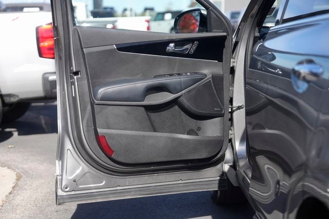 This 2017 Kia Sorento SX Limited in Titanium Silver comes with the following features: 3.3L DOHC 6-Speed Automatic with Sportmatic FWD Sorento SX Limited, 4D Sport Utility, 3.3L DOHC, 6-Speed Automatic with Sportmatic, FWD, Titanium Silver, Satin Black Leather, 10 Speakers, 3.32 Axle Ratio, 3rd row seats: split-bench, 4-Wheel Disc Brakes, ABS brakes, Air Conditioning, Alloy wheels, AM/FM radio: SiriusXM, Anti-whiplash front head restraints, Auto-dimming Rear-View mirror, Automatic temperature control, Brake assist, Bumpers: body-color, CD player, Chrome wheels, Cross Bars, Delay-off headlights, Driver door bin, Driver vanity mirror, Dual front impact airbags, Dual front side impact airbags, Electronic Stability Control, Emergency communication system: UVO3, Four wheel independent suspension, Front anti-roll bar, Front Bucket Seats, Front Center Armrest, Front dual zone A/C, Front fog lights, Front reading lights, Fully automatic headlights, Garage door transmitter: HomeLink, Heated & Ventilated Front Bucket Seats, Heated door mirrors, Heated front seats, Heated rear seats, Heated steering wheel, High-Intensity Discharge Headlights, Illuminated entry, Leather steering wheel, Low tire pressure warning, Memory seat, Nappa Leather Seat Trim, Navigation System, Occupant sensing airbag, Outside temperature display, Overhead airbag, Overhead console, Panic alarm, Passenger door bin, Passenger vanity mirror, Power door mirrors, Power driver seat, Power Liftgate, Power moonroof, Power passenger seat, Power steering, Power windows, Radio: AVN 4.0 Navigation System, Rear air conditioning, Rear anti-roll bar, Rear Parking Sensors, Rear reading lights, Rear seat center armrest, Rear window defroster, Rear window wiper, Remote keyless entry, Roof rack: rails only, Security system, Speed control, Speed-sensing steering, Split folding rear seat, Spoiler, Steering wheel mounted audio controls, SXL Black Metallic Nappa Leather Seat Trim, Tachometer, Telescoping steering wheel, Tilt steering wheel, Traction control, Trip computer, Turn signal indicator mirrors, Variably intermittent wipers, Ventilated front seats, and Wheels: 19 x 7.5 10-Spoke Chrome Alloy.