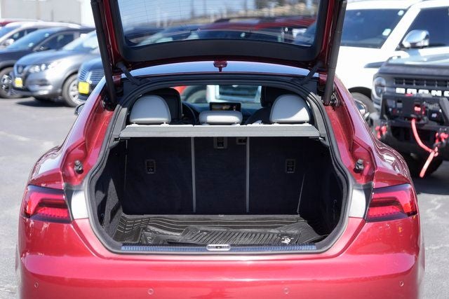 This 2018 Audi A5 2.0T Prestige quattro in Matador Red Metallic comes with the following features: 2.0L 4-Cylinder TFSI 7-Speed Automatic S tronic quattro 19 S line Wheel Package (Wheels: 19 x 8.5 5-Parallel-Spoke Design), Driver Assistance Package (Adaptive Cruise Control w/Traffic Jam Assist and High-Beam Assistant), Prestige (Audi Side Assist, Bang & Olufsen Sound System w/3D Sound, Full LED Headlights, and Rear Audi Pre Sense), S line Sport Package (S Line Bumpers and S line Side Sill Blades), A5 2.0T Prestige quattro, 4D Hatchback, 2.0L 4-Cylinder TFSI, 7-Speed Automatic S tronic, quattro, Matador Red Metallic, Gray Leather, 10 Speakers, 4-Wheel Disc Brakes, ABS brakes, Air Conditioning, Alloy wheels, AM/FM radio, Anti-whiplash front head restraints, Audi Guard All-Weather Floor Mats, Audi smartphone interface (Apple CarPlay/Android Auto), Auto-dimming Rear-View mirror, Automatic temperature control, Brake assist, Bumpers: body-color, Compass, Delay-off headlights, Driver door bin, Driver vanity mirror, Dual front impact airbags, Dual front side impact airbags, Electronic Stability Control, Exterior Parking Camera Rear, Four wheel independent suspension, Front anti-roll bar, Front Bucket Seats, Front Center Armrest, Front dual zone A/C, Front fog lights, Front reading lights, Garage door transmitter: HomeLink, Gray Oak Wood Natural Inlays, Heated door mirrors, High intensity discharge headlights: Bi-xenon, Illuminated entry, Knee airbag, Leather Seating Surfaces, Leather Shift Knob, Leather steering wheel, Occupant sensing airbag, Outside temperature display, Overhead airbag, Overhead console, Panic alarm, Passenger door bin, Passenger vanity mirror, Power adjustable front head restraints, Power door mirrors, Power driver seat, Power Liftgate, Power moonroof, Power passenger seat, Power steering, Power windows, Radio data system, Radio: Audi Sound System, Rain sensing wipers, Rear air conditioning, Rear anti-roll bar, Rear reading lights, Rear seat center armrest, Rear window defroster, Remote keyless entry, Rings Audi Beam, Speed control, Speed-sensing steering, Speed-Sensitive Wipers, Split folding rear seat, Steering wheel mounted audio controls, Tachometer, Telescoping steering wheel, Tilt steering wheel, Traction control, Trip computer, Turn signal indicator mirrors, USB Cables (DISC), Variably intermittent wipers, Ventilated Front Seats, and Wheels: 18 x 8.5 10-Spoke-Dynamic-Design.