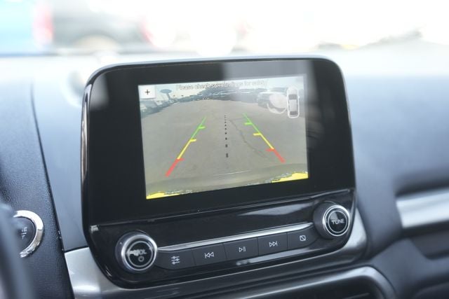 This 2018 Ford EcoSport SE in Smoke Metallic comes with the following features: EcoBoost 1.0L I3 GTDi DOHC Turbocharged VCT 6-Speed Automatic FWD Equipment Group 200A, EcoSport SE, 4D Sport Utility, EcoBoost 1.0L I3 GTDi DOHC Turbocharged VCT, 6-Speed Automatic, FWD, Smoke Metallic, Ebony Black w/Unique Cloth Heated Bucket Seats, 4-Wheel Disc Brakes, 6 Speakers, ABS brakes, Air Conditioning, Alloy wheels, AM/FM radio: SiriusXM, AppLink/Apple CarPlay and Android Auto, Automatic temperature control, Axle Ratio: 3.44, Brake assist, Bumpers: body-color, Compass, Delay-off headlights, Driver door bin, Driver vanity mirror, Dual front impact airbags, Dual front side impact airbags, Electronic Stability Control, Emergency communication system: SYNC 3 911 Assist, Exterior Parking Camera Rear, Front anti-roll bar, Front Bucket Seats, Front Center Armrest, Front fog lights, Front reading lights, Front wheel independent suspension, Fully automatic headlights, Heated front seats, Illuminated entry, Knee airbag, Leather Shift Knob, Leather steering wheel, Low tire pressure warning, Occupant sensing airbag, Outside temperature display, Overhead airbag, Overhead console, Panic alarm, Passenger door bin, Passenger vanity mirror, Power door mirrors, Power driver seat, Power moonroof, Power steering, Power windows, Radio data system, Radio: AM/FM Stereo w/MP3 Capable, Rear Parking Sensors, Rear seat center armrest, Rear side impact airbag, Rear window defroster, Rear window wiper, Remote keyless entry, Roof rack: rails only, SiriusXM Radio, Speed control, Speed-sensing steering, Split folding rear seat, Steering wheel mounted audio controls, SYNC 3 Communications & Entertainment System, Tachometer, Telescoping steering wheel, Tilt steering wheel, Tire Inflator & Sealant Kit, Traction control, Trip computer, Turn signal indicator mirrors, Unique Cloth Heated Bucket Seats, Variably intermittent wipers, and Wheels: 16 Shadow Silver-Painted Aluminum.