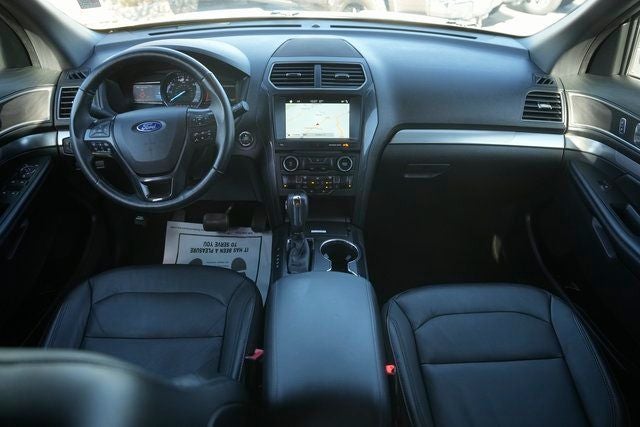 This 2018 Ford Explorer XLT in White Platinum Clearcoat Metallic comes with the following features: 3.5L 6-Cylinder SMPI DOHC 6-Speed Automatic with Select-Shift FWD Driver Connect Package (2 Driver Configurable 4.2 Color LCD Displays), Equipment Group 202A (Forward Sensing System, LED Fog Lamps, Power & Heated Glass Sideview Mirrors, Power Liftgate, Radio: AM/FM Stereo w/7 Speakers, and Remote Start System), Ford Safe & Smart Package (Rain-Sensing Wipers (Front Only)), XLT Technology Feature Bundle (Voice-Activated Touchscreen Navigation System), Explorer XLT, 4D Sport Utility, 3.5L 6-Cylinder SMPI DOHC, 6-Speed Automatic with Select-Shift, FWD, White Platinum Clearcoat Metallic, Black Leather, 20 Polished Aluminum Wheels, 3.39 Non-Limited-Slip Axle Ratio, 3rd row seats: split-bench, 4-Wheel Disc Brakes, 6 Speakers, ABS brakes, Air Conditioning, Alloy wheels, AM/FM radio: SiriusXM, AM/FM Stereo, Brake assist, Bumpers: body-color, Compass, Delay-off headlights, Driver door bin, Driver vanity mirror, Dual front impact airbags, Dual front side impact airbags, Electronic Stability Control, Emergency communication system: 911 Assist, Exterior Parking Camera Rear, Four wheel independent suspension, Front anti-roll bar, Front Bucket Seats, Front Center Armrest, Front License Plate Bracket, Front reading lights, Fully automatic headlights, Heated door mirrors, Illuminated entry, Knee airbag, Leather steering wheel, Low tire pressure warning, Occupant sensing airbag, Outside temperature display, Overhead airbag, Overhead console, Panic alarm, Passenger door bin, Passenger vanity mirror, Power door mirrors, Power driver seat, Power passenger seat, Power steering, Power windows, Rear air conditioning, Rear anti-roll bar, Rear Parking Sensors, Rear reading lights, Rear seat center armrest, Rear window defroster, Rear window wiper, Remote keyless entry, Roof rack: rails only, Security system, Speed control, Speed-sensing steering, Speed-Sensitive Wipers, Split folding rear seat, Spoiler, Steering wheel mounted audio controls, SYNC Communication & Entertainment System, Tachometer, Telescoping steering wheel, Tilt steering wheel, Traction control, Trip computer, Twin Panel Moonroof, Variably intermittent wipers, and Wheels: 18 5-Spoke Sparkle Silver-Painted Alum.