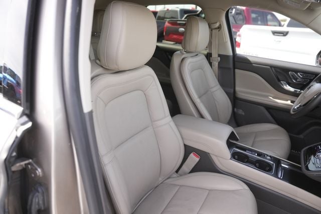 This 2020 Lincoln Corsair Reserve in Mocha comes with the following features: 2.0L I4 8-Speed Automatic FWD Equipment Group 200A, Corsair Reserve, 4D Sport Utility, 2.0L I4, 8-Speed Automatic, FWD, Mocha, Sandstone Leather, 14 Speakers, 3.81 Axle Ratio, 4-Wheel Disc Brakes, ABS brakes, Air Conditioning, Alloy wheels, AM/FM radio: SiriusXM, Auto High-beam Headlights, Auto tilt-away steering wheel, Auto-dimming door mirrors, Auto-dimming Rear-View mirror, Automatic temperature control, Brake assist, Bumpers: body-color, Compass, Delay-off headlights, Driver door bin, Driver vanity mirror, Dual front impact airbags, Dual front side impact airbags, Electronic Stability Control, Emergency communication system: SYNC 3 911 Assist, Four wheel independent suspension, Front anti-roll bar, Front Bucket Seats, Front Center Armrest, Front dual zone A/C, Front fog lights, Front reading lights, Fully automatic headlights, Garage door transmitter, Heated door mirrors, Heated front seats, Illuminated entry, Knee airbag, Lane Departure Warning System, Leather steering wheel, Low tire pressure warning, Memory seat, Navigation System, Occupant sensing airbag, Outside temperature display, Overhead airbag, Overhead console, Panic alarm, Passenger door bin, Passenger vanity mirror, Power door mirrors, Power driver seat, Power Liftgate, Power moonroof: Panoramic Vista Roof, Power passenger seat, Power steering, Power windows, Premium Leather Heated Comfort Seats, Radio data system, Radio: Revel Audio System w/HD Radio & MP3, Rear anti-roll bar, Rear reading lights, Rear seat center armrest, Rear window defroster, Rear window wiper, Remote keyless entry, Roof rack: rails only, Security system, SiriusXM Radio, Speed control, Speed-sensing steering, Speed-Sensitive Wipers, Split folding rear seat, Spoiler, Steering wheel memory, Steering wheel mounted A/C controls, Steering wheel mounted audio controls, SYNC 3 Communications & Entertainment System, Tachometer, Telescoping steering wheel, Tilt steering wheel, Traction control, Trip computer, Turn signal indicator mirrors, Variably intermittent wipers, and Wheels: 19 Ultra Bright Machined Aluminum.