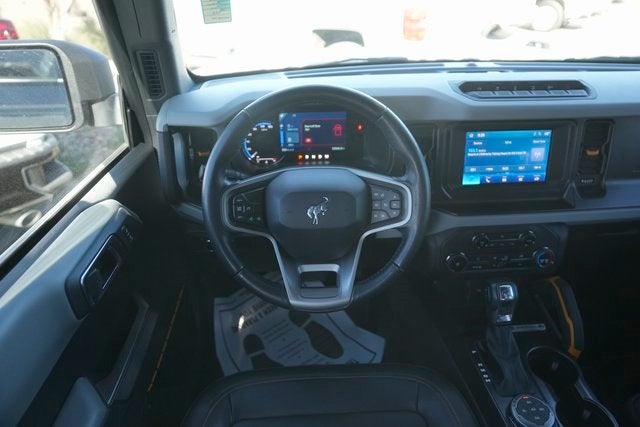 This 2021 Ford Bronco Badlands in Area 51 comes with the following features: 2.7L EcoBoost V6 10-Speed Automatic 4WD Equipment Group 331A Standard Package, Sasquatch Package (Position-Sensitive Bilstein Shock Absorbers and Wheels: 17 Black High Gloss-Painted Aluminum), Bronco Badlands, 4D Sport Utility, 2.7L EcoBoost V6, 10-Speed Automatic, 4WD, Area 51, Medium Sandstone w/Black Onyx w/Heated Leather-Trimmed/Vinyl Bucket Seats, 4-Wheel Disc Brakes, 4.7 Axle Ratio, 6 Speakers, ABS brakes, Air Conditioning, Alloy wheels, AM/FM radio: SiriusXM with 360L, AM/FM Stereo, Auto High-beam Headlights, Brake assist, Compass, Delay-off headlights, Driver door bin, Driver vanity mirror, Dual front impact airbags, Dual front side impact airbags, Emergency communication system: 911 Assist, Exterior Parking Camera Rear, Front anti-roll bar, Front Bucket Seats, Front Center Armrest, Front reading lights, Front wheel independent suspension, Fully automatic headlights, Heated door mirrors, Illuminated entry, Integrated roll-over protection, Leather Shift Knob, Low tire pressure warning, Marine Grade Vinyl Bucket Seats, Occupant sensing airbag, Outside temperature display, Overhead airbag, Overhead console, Panic alarm, Passenger door bin, Passenger vanity mirror, Power door mirrors, Power steering, Power windows, Radio data system, Remote keyless entry, Security system, SiriusXM Radio w/360L, Speed control, Split folding rear seat, Steering wheel mounted audio controls, SYNC 4, Tachometer, Telescoping steering wheel, Tilt steering wheel, Traction control, Trip computer, Variably intermittent wipers, Voltmeter, and Wheels: 17 Machined Carbonized Aluminum.