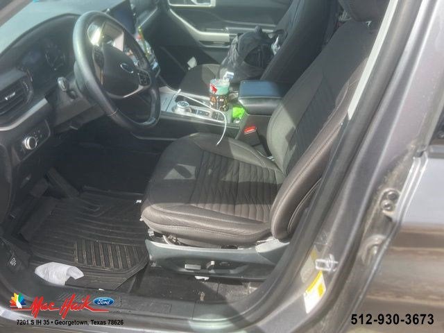 This 2021 Ford Explorer XLT in Gray comes with the following features: 2.3L EcoBoost I-4 10-Speed Automatic RWD Equipment Group 200A, 1st Row Heated Seats, 3.58 Non-Limited-Slip Rear Axle Ratio, 3rd row seats: bench, 4-Wheel Disc Brakes, 6 Speakers, ABS brakes, Air Conditioning, Alloy wheels, AM/FM radio: SiriusXM, AM/FM Stereo, Auto High-beam Headlights, Automatic temperature control, Brake assist, Bumpers: body-color, Compass, Delay-off headlights, Driver door bin, Driver vanity mirror, Dual front impact airbags, Dual front side impact airbags, Electronic Stability Control, Emergency communication system: SYNC 3 911 Assist, Exterior Parking Camera Rear, FordPass Connect, Four wheel independent suspension, Front anti-roll bar, Front Bucket Seats, Front Center Armrest, Front dual zone A/C, Front reading lights, Fully automatic headlights, Heated door mirrors, Heated front seats, Illuminated entry, Knee airbag, Leather steering wheel, Low tire pressure warning, Occupant sensing airbag, Outside temperature display, Overhead airbag, Overhead console, Panic alarm, Passenger door bin, Passenger vanity mirror, Power door mirrors, Power driver seat, Power Liftgate, Power passenger seat, Power steering, Power windows, Rear air conditioning, Rear anti-roll bar, Rear reading lights, Rear window defroster, Rear window wiper, Remote keyless entry, Roof rack: rails only, Security system, Speed control, Speed-sensing steering, Speed-Sensitive Wipers, Split folding rear seat, Spoiler, Steering wheel mounted audio controls, SYNC 3 Communications & Entertainment System, SYNC 3/Apple CarPlay/Android Auto, Tachometer, Telescoping steering wheel, Tilt steering wheel, Traction control, Trip computer, Unique Cloth Captain's Chairs, Variably intermittent wipers, and Wheels: 18 5-Spoke Sparkle Silver-Painted Alum.