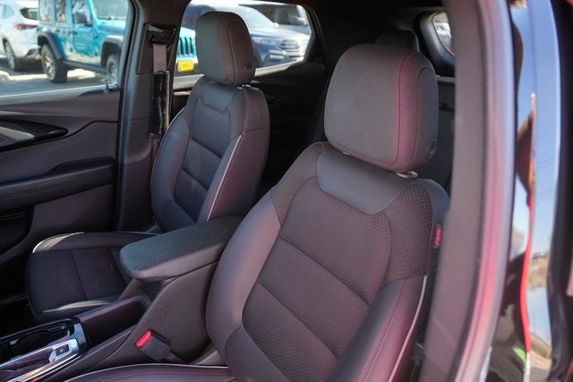 This 2022 Chevrolet TrailBlazer RS in Mosaic Black Metallic comes with the following features: 1.3L Ecotec Turbo DOHC SIDI w/VVT CVT FWD Preferred Equipment Group 1RS (Heated Steering Wheel), TrailBlazer RS, 4D Sport Utility, 1.3L Ecotec Turbo DOHC SIDI w/VVT, CVT, FWD, Mosaic Black Metallic, Jet Black With Red Accents Cloth, 2-Way Power Driver Lumbar Seat Adjuster, 4-Way Manual Front Passenger Seat Adjuster, 4-Wheel Disc Brakes, 5.45 Axle Ratio, 6 Speakers, 6-Speaker Audio System Feature, 8-Way Power Driver Seat Adjuster, ABS brakes, Air Conditioning, Alloy wheels, AM/FM radio: SiriusXM, Auto High-beam Headlights, Brake assist, Bumpers: body-color, Cloth w/Leatherette Seat Trim, Compass, Delay-off headlights, Driver door bin, Driver vanity mirror, Dual front impact airbags, Dual front side impact airbags, Electronic Stability Control, Emergency communication system: OnStar and Chevrolet connected services capable, Exterior Parking Camera Rear, Flat-Folding Front Passenger Seatback, Front anti-roll bar, Front Bucket Seats, Front Center Armrest, Front fog lights, Front License Plate Bracket, Front reading lights, Front wheel independent suspension, Fully automatic headlights, Heated door mirrors, Heated Driver & Front Passenger Seats, Heated front seats, Heated steering wheel, Illuminated entry, Knee airbag, Leather Shift Knob, Leather steering wheel, Low tire pressure warning, Mosaic Black Metallic Roof, Occupant sensing airbag, Overhead airbag, Overhead console, Panic alarm, Passenger door bin, Passenger vanity mirror, Power door mirrors, Power driver seat, Power steering, Power windows, Radio data system, Radio: Chevrolet Infotainment 3 System, Rear seat center armrest, Rear side impact airbag, Rear window defroster, Rear window wiper, Remote keyless entry, Ride & Handling Suspension, Roof rack: rails only, Security system, SiriusXM Radio, Speed control, Split folding rear seat, Spoiler, Steering wheel mounted audio controls, Tachometer, Telescoping steering wheel, Tilt steering wheel, Traction control, Trip computer, Variably intermittent wipers, Wheels: 18 High Gloss Black Machined Aluminum, and Wireless Apple CarPlay/Android Auto.