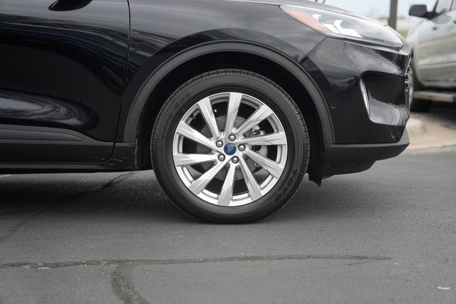 This 2022 Ford Escape Titanium in Agate Black Metallic comes with the following features: EcoBoost 2.0L I4 GTDi DOHC Turbocharged VCT 8-Speed Automatic AWD Class II Trailer Tow Package, Equipment Group 401A, Titanium Elite Package (Active Park Assist 2.0, Chrome 5-Bar Upper Grille w/Chrome Surround, Front & Rear Floor Mats, Front & Rear Silver Skid Plates, HD Radio, Head-Up Display, Heated Leather-Trimmed Front Sport Contour Seats, Leather Wrapped Steering Wheel, Radio: B&O Sound System by Bang & Olufsen, Wheels: 19 Luster Nickel-Painted Aluminum, and Wireless Charging Pad), Escape Titanium, 4D Sport Utility, EcoBoost 2.0L I4 GTDi DOHC Turbocharged VCT, 8-Speed Automatic, AWD, Agate Black Metallic, Ebony/Sandstone Leather, 3.47 Axle Ratio, 4-Wheel Disc Brakes, 4G LTE Wi-Fi Hotspot Removal, 6 Speakers, ABS brakes, Air Conditioning, Alloy wheels, AM/FM radio: SiriusXM, AM/FM Stereo, Auto High-beam Headlights, Auto-dimming Rear-View mirror, Automatic temperature control, Black Roof-Rack Side Rails, Brake assist, Bumpers: body-color, Compass, Delay-off headlights, Driver door bin, Driver vanity mirror, Dual front impact airbags, Dual front side impact airbags, Electronic Stability Control, Emergency communication system: SYNC 3 911 Assist, Exterior Parking Camera Rear, FordPass Connect, Four wheel independent suspension, Front anti-roll bar, Front Bucket Seats, Front Center Armrest, Front dual zone A/C, Front fog lights, Front reading lights, Fully automatic headlights, Garage door transmitter, Hands-Free Foot-Activated Liftgate Feature Removal, Heated ActiveX Trimmed Front Sport Contour Bucket Seats, Heated door mirrors, Heated front seats, Heated steering wheel, Illuminated entry, Knee airbag, Low tire pressure warning, Memory seat, Navigation System, Occupant sensing airbag, Outside temperature display, Overhead airbag, Overhead console, Panic alarm, Panoramic Vista Roof, Passenger door bin, Passenger vanity mirror, Power door mirrors, Power driver seat, Power Liftgate, Power passenger seat, Power steering, Power windows, Radio data system, Rain sensing wipers, Rear anti-roll bar, Rear reading lights, Rear seat center armrest, Rear window defroster, Rear window wiper, Remote keyless entry, Roof rack: rails only, Security system, Speed control, Speed-sensing steering, Speed-Sensitive Wipers, Split folding rear seat, Spoiler, Steering wheel mounted audio controls, SYNC 3 Communications & Entertainment System, Tachometer, Telescoping steering wheel, Tilt steering wheel, Traction control, Trip computer, Variably intermittent wipers, Voice-Activated Touchscreen Navigation System, and Wheels: 19 Machined-Face Aluminum.