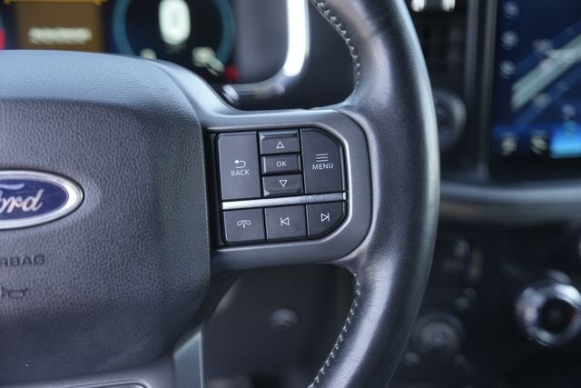 This 2022 Ford F-150 Lariat ROUSH SUPER CHARGER in Atlas Blue Metallic comes with the following features: 5.0L V8 10-Speed Automatic 4WD Bed Utility Package (BoxLink, LED Box Lighting, Power Tailgate, and Tailgate Step w/Tailgate Work Surface), Equipment Group 502A High (2nd Row Heated Seats, Heated Steering Wheel, Leather-Trimmed Bucket Seats, LED Projector w/Dynamic Bending Headlamps, Onboard 400W Outlet, Power Glass Sideview Mirr w/Chrome Skull Caps, Power Tilt/Telescoping Steering Column w/Memory, Radio: B&O Sound System by Bang & Olufsen, Rain-Sensing Wipers, Universal Garage Door Opener, and Wireless Charging Pad), Ford Co-Pilot360 Assist 2.0 (DISC) (Connected Built-In Navigation, Evasive Steering Assist, Intelligent Adaptive Cruise Control w/Stop & Go, Intersection Assist, and Speed Sign Recognition), Lariat Chrome Appearance Package (6 Bright Polished Running Board, Chrome 2-Bar Grille w/4 Minor Bars, Chrome Door & Tailgate Handles w/Body-Color Bezel, Chrome Single-Tip Exhaust, Chrome Skull Caps on Exterior Mirrors, and Wheels: 18 Chrome-Like PVD), Lariat Sport Appearance Package (Accent-Color Angular Step Bars, Body-Color Front & Rear Bumpers, Box Side Decals, Dark 2-Bar & 1 Minor Bar Style Grille, and Wheels: 18 6-Spoke Machined Aluminum), Max Trailer Tow Package (Class IV Trailer Hitch Receiver, Extended Range 36 Gallon Fuel Tank, Integrated Trailer Brake Controller, and Pro Trailer Backup Assist), F-150 Lariat ROUSH SUPER CHARGER, 4D SuperCrew, 5.0L V8, 10-Speed Automatic, 4WD, Atlas Blue Metallic, Black Leather, 18 Machined-Aluminum Wheels, 360 Degree Camera, 4-Wheel Disc Brakes, 7 Speakers, ABS brakes, Adjustable pedals, Air Conditioning, Alloy wheels, AM/FM radio: SiriusXM with 360L, Auto High-beam Headlights, Auto-dimming door mirrors, Auto-dimming Rear-View mirror, Automatic temperature control, Brake assist, Bumpers: chrome, Compass, Delay-off headlights, Driver door bin, Driver vanity mirror, Dual front impact airbags, Dual front side impact airbags, Electronic Stability Control, Emergency communication system: SYNC 4 911 Assist, Exterior Parking Camera Rear, Front anti-roll bar, Front Center Armrest w/Storage, Front dual zone A/C, Front fog lights, Front reading lights, Front wheel independent suspension, Fully automatic headlights, Heated door mirrors, Heated front seats, Illuminated entry, Interior Work Surface, Leather-Trimmed 40/20/40 Front Seat, LED Sideview Mirror Spotlights, Low tire pressure warning, Memory seat, Occupant sensing airbag, Outside temperature display, Overhead airbag, Overhead console, Panic alarm, Passenger door bin, Passenger vanity mirror, Pedal memory, Power door mirrors, Power driver seat, Power passenger seat, Power steering, Power windows, Radio data system, Radio: AM/FM SiriusXM w/360L, Rear reading lights, Rear seat center armrest, Rear step bumper, Rear window defroster, Remote keyless entry, Security system, Speed control, Speed-sensing steering, Split folding rear seat, Steering wheel mounted audio controls, SYNC 4 w/Enhanced Voice Recognition, Tachometer, Telescoping steering wheel, Tilt steering wheel, Traction control, Trip computer, Turn signal indicator mirrors, Twin Panel Moonroof, Variably intermittent wipers, Ventilated front seats, Voltmeter, and Wheel Well Liner.
