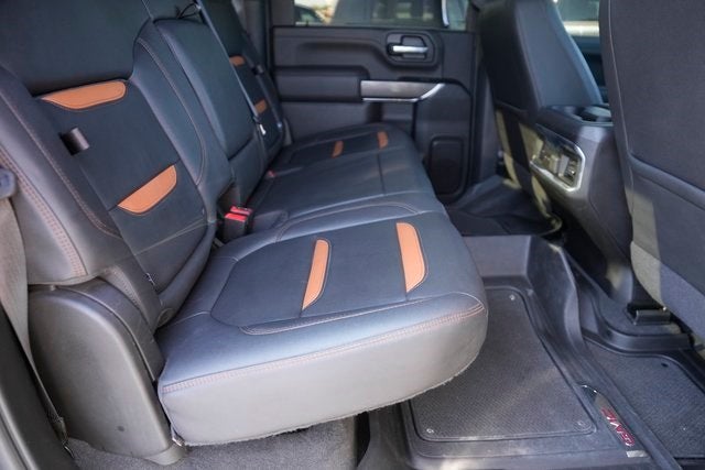 This 2022 GMC Sierra 2500HD AT4 in Ebony Twilight Metallic comes with the following features: Duramax 6.6L V8 Turbodiesel 10-Speed Automatic 4WD AT4 Preferred Package (Bed View Camera w/2 Trailer Camera Provisions, Bose Premium 7 Speaker Sound System, HD Surround Vision w/2 Trailer View Camera Provisions, LED Smoked Amber Roof Marker Lamps, Power Sliding Rear Window w/Defogger, Radio: AM/FM w/Prem GMC Infotainment System & Navi, Universal Home Remote, and Wireless Charging), Driver Alert Package I (Lane Change Alert w/Side Blind Zone Alert, Rear Cross Traffic Alert, and Ultrasonic Front & Rear Park Assist), Gooseneck/5th Wheel Package, Gooseneck/5th Wheel Prep Package, Preferred Equipment Group 4SB (12-Volt Rear Auxiliary Power Outlet, 120-Volt Bed Mounted Power Outlet, 120-Volt Instrument Panel Power Outlet, 2 USB Ports, 2 USB Ports (1st Row), 2-Speed Active Transfer Case, 2nd Row Dual USB Charge-Only Ports, 4.2 Diagonal Color Display Driver Info Center, Compass Located In Instrument Cluster, Deep-Tinted Glass, Electric Rear-Window Defogger, Electrical Lock Control Steering Column, Floor-Mounted Center Console, Front Prem Floor Liners w/Removable Carpet Insert, GMC Connected Access Capable, HD Rear Vision Camera, Heated & Ventilated Front Bucket Seats, Heated Driver & Front Outboard Passenger Seats, Integrated Trailer Brake Controller, Keyless Open & Start, LED Cargo Area Lighting, Manual Tilt-Wheel/Telescoping Steering Column, OnStar & GMC Connected Services Capable, Painted Black Surround Grille, Power Door Locks, Power Front Passenger Windows w/Express Up/Down, Power Rear Windows w/Express Down, Power Windows w/Driver Express Up/Down, Rear Prem Floor Liners w/Removable Carpet Insert, Rear Wheelhouse Liners, Red Recovery Hooks, Remote Vehicle Starter System, Spray-On Pickup Box Bed Liner w/AT4 Logo, Steering Wheel Audio Controls, Unauthorized Entry Theft-Deterrent System, Wi-Fi Hotspot Capable, and Wireless Phone Projection), X31 Off-Road Package (Hill Descent Control), Sierra 2500HD AAT4, 4D Crew Cab, Duramax 6.6L V8 Turbodiesel, 10-Speed Automatic, 4WD, Ebony Twilight Metallic, Jet Black With Kalahari Accents Leather, 10-Way Power Driver Seat Adjuster w/Lumbar, 10-Way Power Passenger Seat Adjuster w/Lumbar, 18 Machined Aluminum Wheels, 4-Wheel Disc Brakes, 6 Speakers, 6-Speaker Audio System Feature, ABS brakes, Air Conditioning, Alloy wheels, AM/FM radio: SiriusXM with 360L, Apple CarPlay/Android Auto, Auto-dimming door mirrors, Auto-dimming Rear-View mirror, Automatic temperature control, Brake assist, Bumpers: body-color, Compass, Delay-off headlights, Driver door bin, Driver Memory, Driver vanity mirror, Dual 220-Amps Primary/170-Amps Aux Alternators, Dual front impact airbags, Dual front side impact airbags, Electronic Stability Control, Emergency communication system: OnStar and GMC Connected Services capable, Engine Block Heater, Exhaust Brake, Front anti-roll bar, Front Bucket Seats, Front Center Armrest, Front dual zone A/C, Front fog lights, Front License Plate Kit, Front reading lights, Front wheel independent suspension, Fully automatic headlights, Heated door mirrors, Heated front seats, Heated steering wheel, Heavy-Duty 80 Amp Battery, High Idle Switch, Hitch Guidance w/Hitch View, Illuminated entry, In-Vehicle Trailering System App, Low tire pressure warning, Memory seat, Not Equipped w/Front & Rear Park Assist, Not Equipped w/Heated 2nd Row Outboard Seats, Not Equipped w/Heated Steering Wheel (DISC), Not Equipped w/Heated/Ventilated Front Seats, Occupant sensing airbag, Off-Road Suspension, Outside temperature display, Overhead airbag, Overhea