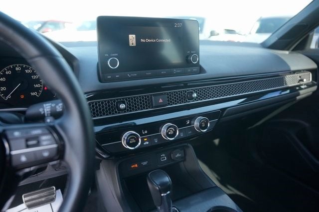 This 2022 Honda Civic Sport in Boost Blue Pearl comes with the following features: 2.0L I4 DOHC 16V CVT FWD Civic Sport, 4D Hatchback, 2.0L I4 DOHC 16V, CVT, FWD, Boost Blue Pearl, Black w/Cloth Seat Trim, 18 Alloy Wheels, 4-Wheel Disc Brakes, 8 Speakers, ABS brakes, Adaptive Cruise Control: Adaptive Cruise Control (ACC) with Low-Speed Follow, Air Conditioning, Alloy wheels, AM/FM radio, Apple CarPlay/Android Auto, Auto High-beam Headlights, Automatic temperature control, Brake assist, Bumpers: body-color, Delay-off headlights, Driver door bin, Driver vanity mirror, Dual front impact airbags, Dual front side impact airbags, Electronic Stability Control, Emergency communication system: HondaLink, Exterior Parking Camera Rear, Fabric Seating Surfaces, Forward collision: Collision Mitigation Braking System (CMBS) + FCW mitigation, Four wheel independent suspension, Front anti-roll bar, Front Bucket Seats, Front Center Armrest, Front reading lights, Fully automatic headlights, Illuminated entry, Knee airbag, Lane departure: Lane Keeping Assist System (LKAS) active, Leather Shift Knob, Leather steering wheel, Low tire pressure warning, Occupant sensing airbag, Outside temperature display, Overhead airbag, Panic alarm, Passenger door bin, Passenger vanity mirror, Power door mirrors, Power steering, Power windows, Radio data system, Radio: 180-Watt Audio System, Rear anti-roll bar, Rear side impact airbag, Rear window defroster, Rear window wiper, Remote keyless entry, Security system, Speed control, Speed-sensing steering, Split folding rear seat, Steering wheel mounted audio controls, Tachometer, Telescoping steering wheel, Tilt steering wheel, Traction control, Trip computer, and Voltmeter.