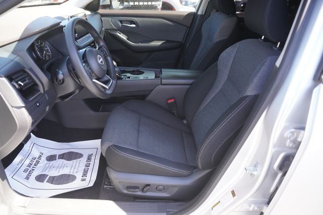 This 2022 Nissan Rogue SV in Brilliant Silver Metallic comes with the following features: 1.5L I3 Turbocharged DOHC 12V LEV3-ULEV50 201hp CVT with Xtronic FWD Rogue SV, 4D Sport Utility, 1.5L I3 Turbocharged DOHC 12V LEV3-ULEV50 201hp, CVT with Xtronic, FWD, Brilliant Silver Metallic, Charcoal Cloth, 18 Aluminum Alloy Wheels, 4-Wheel Disc Brakes, 5.604 Axle Ratio, 6 Speakers, ABS brakes, Air Conditioning, Alloy wheels, AM/FM Radio, AM/FM radio: SiriusXM, Auto High-beam Headlights, Automatic temperature control, Black Splash Guards (Set of 4), Brake assist, Bumpers: body-color, Chrome Rear Bumper Protector, Cloth Seat Trim, Delay-off headlights, Driver door bin, Driver vanity mirror, Dual front impact airbags, Dual front side impact airbags, Electronic Stability Control, Emergency communication system: NissanConnect Services, First Aid Kit, Floor Mats w/1-Piece Cargo Area Protector, Four wheel independent suspension, Front anti-roll bar, Front Bucket Seats, Front Center Armrest, Front dual zone A/C, Front reading lights, Fully automatic headlights, Heated door mirrors, Illuminated entry, Knee airbag, Low tire pressure warning, NissanConnect featuring Apple CarPlay and Android Auto, Occupant sensing airbag, Outside temperature display, Overhead airbag, Overhead console, Panic alarm, Passenger door bin, Passenger vanity mirror, Power door mirrors, Power driver seat, Power steering, Power windows, Radio data system, Rear anti-roll bar, Rear Parking Sensors, Rear seat center armrest, Rear side impact airbag, Rear window defroster, Rear window wiper, Remote keyless entry, Security system, Speed control, Speed-Sensitive Wipers, Split folding rear seat, Spoiler, Steering wheel mounted audio controls, Tachometer, Telescoping steering wheel, Tilt steering wheel, Traction control, Trip computer, Turn signal indicator mirrors, and Variably intermittent wipers.