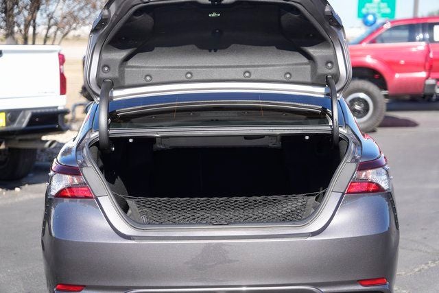 This 2022 Toyota Camry Hybrid SE in Predawn Gray Mica comes with the following features: 2.5L I4 DOHC 16V eCVT FWD Camry Hybrid SE, 4D Sedan, 2.5L I4 DOHC 16V, eCVT, FWD, Predawn Gray Mica, Ash w/Fabric Seat Trim w/Sport SofTex, 4-Wheel Disc Brakes, 6 Speakers, ABS brakes, Air Conditioning, Alloy wheels, AM/FM radio: SiriusXM, Apple CarPlay/Android Auto, Auto High-beam Headlights, Automatic temperature control, Brake assist, Bumpers: body-color, Delay-off headlights, Driver door bin, Driver vanity mirror, Dual front impact airbags, Dual front side impact airbags, Electronic Stability Control, Emergency communication system: Safety Connect with 1-year trial, Exterior Parking Camera Rear, Fabric Seat Trim w/Sport SofTex, Four wheel independent suspension, Front anti-roll bar, Front Bucket Seats, Front Center Armrest, Front dual zone A/C, Front reading lights, Fully automatic headlights, Heated door mirrors, Illuminated entry, Knee airbag, Low tire pressure warning, Occupant sensing airbag, Outside temperature display, Overhead airbag, Overhead console, Panic alarm, Passenger door bin, Passenger vanity mirror, Power door mirrors, Power driver seat, Power steering, Power windows, Radio data system, Radio: AM/FM Audio System, Rear anti-roll bar, Rear reading lights, Rear seat center armrest, Rear side impact airbag, Rear window defroster, Remote keyless entry, Security system, Speed control, Speed-sensing steering, Split folding rear seat, Spoiler, Steering wheel mounted audio controls, Telescoping steering wheel, Tilt steering wheel, Traction control, Trip computer, Turn signal indicator mirrors, Variably intermittent wipers, and Wheels: 8.0J x 18 Machined Finish Alloy.