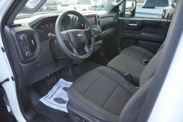 This 2023 Chevrolet Silverado 2500HD Custom in Summit White comes with the following features: 6.6L V8 6-Speed Automatic 4WD Custom Convenience Package (Electric Rear-Window Defogger, EZ Lift Power Lock & Release Tailgate, Integrated Trailer Brake Controller, LED Cargo Area Lighting, and Remote Vehicle Starter System), Custom Value Package (Auto-Dimming Inside Rear-View Mirror and Power-Adjustable Vertical Trailering Mirrors), Infotainment Package (Compass, OnStar & Chevrolet Connected Services Capable, SiriusXM Radio, and Wi-Fi Hotspot Capable), Preferred Equipment Group 1CX (170 Amp Alternator, 2-Speed Electronic Shift Transfer Case, 3.5 Diagonal Monochromatic Display DIC, Black Mirror Caps, Bluetooth® For Phone, Body Color Front Grille, Color-Keyed Carpeting Floor Covering, Deep-Tinted Glass, Electronic Cruise Control w/Set & Resume Speed, Front Rubberized Vinyl Floor Mats, Heated Vertical Trailering Mirrors, Locking Tailgate, Manual Tailgate Function w/No EZ Lift, Manual Tilt-Wheel Steering Column, Power Door Locks, Power Front Windows w/Driver Express Up/Down, Power Front Windows w/Passenger Express Down, Power Rear Windows w/Express Down, Rear 60/40 Folding Bench Seat (Folds Up), Rear Rubberized Vinyl Floor Mats, Remote Keyless Entry, and Standard Tailgate), Suspension Package, Silverado 2500HD Custom, 4D Crew Cab, 6.6L V8, 6-Speed Automatic, 4WD, Summit White, Black Cloth, 10-Way Power Driver Seat Adjuster w/Lumbar, 120-Volt Bed Mounted Power Outlet, 120-Volt Instrument Panel Power Outlet, 3 Years of Remote Access, 3.73 Rear Axle Ratio, 4-Wheel Disc Brakes, 6 Speakers, 6-Speaker Audio System, 720 Cold-Cranking Amps Heavy-Duty Battery, ABS brakes, Air Conditioning, Alloy wheels, AM/FM radio, Apple CarPlay/Android Auto, Brake assist, Cloth Seat Trim, Delay-off headlights, Driver door bin, Dual front impact airbags, Dual front side impact airbags, Electronic Stability Control, Front 40/20/40 Split-Bench Seats, Front anti-roll bar, Front Center Armrest w/Storage, Front License Plate Kit, Front reading lights, Front wheel independent suspension, Fully automatic headlights, Heated door mirrors, Illuminated entry, Low tire pressure warning, Occupant sensing airbag, Outside temperature display, Overhead airbag, Overhead console, Panic alarm, Passenger door bin, Passenger vanity mirror, Power door mirrors, Power steering, Power windows, Premium audio system: Chevrolet Infotainment 3, Radio: Chevrolet Infotainment 3 System, Rear reading lights, Rear step bumper, Remote keyless entry, Speed control, Split folding rear seat, Tachometer, Tilt steering wheel, Traction control, Trip computer, Turn signal indicator mirrors, Variably intermittent wipers, Voltmeter, and Wheels: 20 10-Spoke Machined Aluminum.