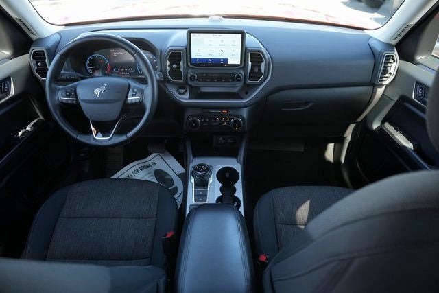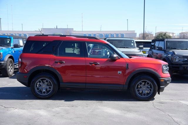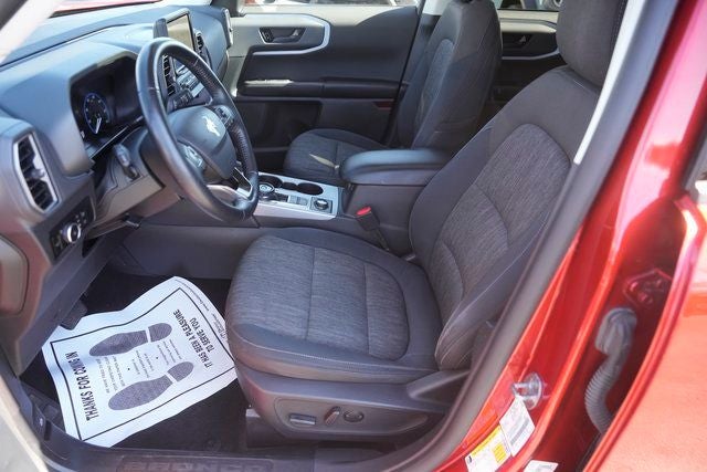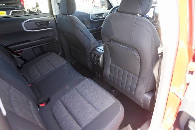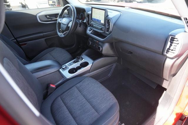 This 2023 Ford Bronco Sport Big Bend in Hot Pepper Red Tinted Clearcoat comes with the following features: 1.5L EcoBoost 8-Speed Automatic 4WD Class II Trailer Tow Package w/Trailer Sway Control, Convenience Package (Front Driver & Passenger Seatback Zipper Pockets, Heated Front Bucket Seats, Intelligent Access (Lock/Unlock), Leather-Wrapped Steering Wheel, LED Fog Lamps, Rear Parking Sensors, Universal Garage Door Opener (UGDO), and Wireless Charging Pad), Equipment Group 200A, Bronco Sport Big Bend, 4D Sport Utility, 1.5L EcoBoost, 8-Speed Automatic, 4WD, Hot Pepper Red Tinted Clearcoat, Ebony w/Unique Cloth Front Bucket Seats, 3.80 Axle Ratio, 4-Wheel Disc Brakes, 4G LTE Wi-Fi Hotspot Credit, 6 Speakers, ABS brakes, Air Conditioning, Alloy wheels, AM/FM radio: SiriusXM, AM/FM Stereo, Auto High-beam Headlights, Automatic temperature control, Brake assist, Compass, Delay-off headlights, Driver door bin, Driver vanity mirror, Dual front impact airbags, Dual front side impact airbags, Electronic Stability Control, Emergency communication system: SYNC 3 911 Assist, Four wheel independent suspension, Front anti-roll bar, Front Bucket Seats, Front Center Armrest, Front License Plate Bracket, Front reading lights, Fully automatic headlights, Heated door mirrors, Illuminated entry, Knee airbag, Low tire pressure warning, Occupant sensing airbag, Outside temperature display, Overhead airbag, Overhead console, Panic alarm, Passenger door bin, Passenger vanity mirror, Power door mirrors, Power steering, Power windows, Radio data system, Rear anti-roll bar, Rear reading lights, Rear seat center armrest, Rear window defroster, Rear window wiper, Remote keyless entry, Security system, SiriusXM, Speed control, Speed-sensing steering, Speed-Sensitive Wipers, Split folding rear seat, Steering wheel mounted audio controls, SYNC 3 Communications & Entertainment System, SYNC 3/Apple CarPlay/Android Auto, Tachometer, Telescoping steering wheel, Tilt steering wheel, Traction control, Trip computer, Unique Cloth Front Bucket Seats, Variably intermittent wipers, and Wheels: 17 Carbonized Gray-Painted Aluminum.