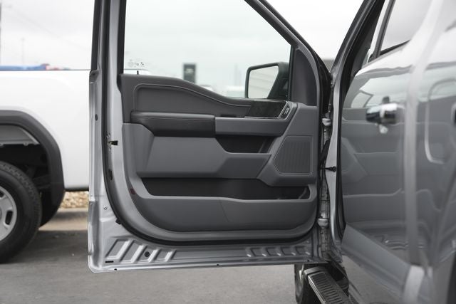 This 2023 Ford F-150 XLT in Silver Metallic comes with the following features: 5.0L V8 10-Speed Automatic 4WD Equipment Group 302A High (Class IV Trailer Hitch Receiver), Trailer Tow Package (Integrated Trailer Brake Controller and Pro Trailer Backup Assist & Pro Trailer Hitch Assist), F-150 XLT, 4D SuperCrew, 5.0L V8, 10-Speed Automatic, 4WD, Silver Metallic, Black W/Medium Dark Slate Cloth, 4-Wheel Disc Brakes, 6 Speakers, ABS brakes, Air Conditioning, Alloy wheels, AM/FM radio, Auto High-beam Headlights, Brake assist, Bumpers: chrome, Cloth 40/20/40 Front Seat, Compass, Delay-off headlights, Driver door bin, Driver vanity mirror, Dual front impact airbags, Dual front side impact airbags, Electronic Stability Control, Emergency communication system: SYNC 4 911 Assist, Extended Range 36 Gallon Fuel Tank, Exterior Parking Camera Rear, Front anti-roll bar, Front Center Armrest w/Storage, Front fog lights, Front License Plate Bracket, Front reading lights, Front wheel independent suspension, Fully automatic headlights, Heated door mirrors, Illuminated entry, Low tire pressure warning, Occupant sensing airbag, Outside temperature display, Overhead airbag, Overhead console, Panic alarm, Passenger door bin, Passenger vanity mirror, Power door mirrors, Power steering, Power windows, Radio data system, Radio: AM/FM Stereo w/6 Speakers, Rear reading lights, Rear step bumper, Rear window defroster, Remote keyless entry, Security system, Speed control, Speed-sensing steering, Split folding rear seat, Steering wheel mounted audio controls, SYNC 4, Tachometer, Telescoping steering wheel, Tilt steering wheel, Traction control, Tray Style Floor Liner (47W), Trip computer, Variably intermittent wipers, Voltmeter, and Wheels: 17 Silver Painted Aluminum.
