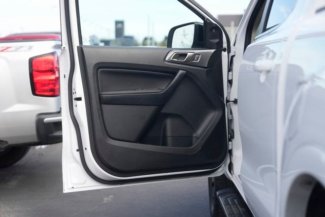This 2023 Ford Ranger Lariat in Oxford White comes with the following features: EcoBoost 2.3L I4 GTDi DOHC Turbocharged VCT 10-Speed Automatic 4WD Black Appearance Package (5 Rectangular Black Running Boards, Black Fender Vent Surround, Black Painted Mirror Skull Caps, Blk Mesh Grille w/Blk Painted Surround & Blk Bars, Body-Color Front & Rear Bumpers, Dark Box Decal, Tough Bed Spray-In Bedliner, and Wheels: 18 Black-Painted Aluminum), Equipment Group 501A High ((2) 4.2 Colored Productivity Screens, Radio: B&O Sound System by Bang & Olufsen, Rain-Sensing Wipers, Remote Start System, SYNC 3, and Universal Garage Door Opener (UGDO)), FX4 Off-Road Package (FX4 Off-Road Box Decal, Off-Road Screen in Cluster, Off-Road Tuned Suspension, and Terrain Management System), Technology Package (Adaptive Cruise Control, Front Parking Sensors, and Navigation), Ranger Lariat, 4D Crew Cab, EcoBoost 2.3L I4 GTDi DOHC Turbocharged VCT, 10-Speed Automatic, 4WD, Oxford White, Ebony Leather, 4-Wheel Disc Brakes, 4G LTE Wi-Fi Hotspot Removal, 6 Speakers, ABS brakes, Air Conditioning, Alloy wheels, AM/FM radio: SiriusXM, AM/FM Stereo, Auto High-beam Headlights, Auto Start-Stop Removal, Auto-dimming Rear-View mirror, Automatic temperature control, Brake assist, Bumpers: body-color, Compass, Delay-off headlights, Driver door bin, Driver vanity mirror, Dual front impact airbags, Dual front side impact airbags, Electronic Stability Control, Emergency communication system: SYNC 3 911 Assist, Exterior Parking Camera Rear, Front anti-roll bar, Front Bucket Seats, Front Center Armrest, Front dual zone A/C, Front fog lights, Front Heated Leather-Trimmed Bucket Seats, Front reading lights, Front wheel independent suspension, Fully automatic headlights, Heated door mirrors, Heated front seats, Illuminated entry, Leather Shift Knob, Leather steering wheel, Low tire pressure warning, Occupant sensing airbag, Outside temperature display, Overhead airbag, Overhead console, Panic alarm, Passenger door bin, Passenger vanity mirror, Power door mirrors, Power driver seat, Power passenger seat, Power steering, Power windows, Rear reading lights, Rear seat center armrest, Rear step bumper, Rear window defroster, Remote keyless entry, Security system, SiriusXM Satellite Radio, Speed control, Speed-sensing steering, Steering wheel mounted audio controls, SYNC 3/Apple CarPlay/Android Auto, Telescoping steering wheel, Tilt steering wheel, Traction control, Trip computer, Turn signal indicator mirrors, Variably intermittent wipers, Voltmeter, and Wheels: 18 Machined Alum w/Stealth Gray Pockets.