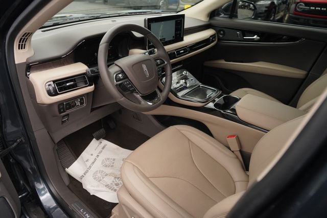 This 2023 Lincoln Nautilus Reserve in Blue Metallic comes with the following features: 2.0L Turbocharged 8-Speed Automatic FWD Cargo Accessories & Mat Package (43D) (All-Weather Floor Liners w/o Carpet Mats, Durable Lightweight Rubber Cargo Mat, and Rear Bumper Anti-Scratch Pad/Load Protector), Equipment Group 200A, Luxury Package (Hands-Free Liftgate, Phone As A Key, and Revel Audio System w/13 Speakers & HD Radio), Nautilus Reserve, 4D Sport Utility, 2.0L Turbocharged, 8-Speed Automatic, FWD, Blue Metallic, Sandstone Leather, 10 Speakers, 3.80 Axle Ratio, 4-Wheel Disc Brakes, ABS brakes, Air Conditioning, Alexa Built-In, Alloy wheels, AM/FM radio: SiriusXM with 360L, Auto High-beam Headlights, Auto tilt-away steering wheel, Auto-dimming door mirrors, Auto-dimming Rear-View mirror, Automatic temperature control, Brake assist, Bumpers: body-color, Compass, Delay-off headlights, Driver door bin, Driver vanity mirror, Dual front impact airbags, Dual front side impact airbags, Electronic Stability Control, Emergency communication system: 911 Assist, First Aid Kit, Four wheel independent suspension, Front anti-roll bar, Front Bucket Seats, Front Center Armrest w/Storage, Front dual zone A/C, Front License Plate Bracket, Front reading lights, Fully automatic headlights, Garage door transmitter: HomeLink, Heated door mirrors, Heated front seats, Heated rear seats, Heated steering wheel, Illuminated entry, Knee airbag, Leather steering wheel, Low tire pressure warning, Memory seat, Navigation System, Occupant sensing airbag, Outside temperature display, Overhead airbag, Overhead console, Panic alarm, Passenger door bin, Passenger vanity mirror, Power door mirrors, Power driver seat, Power Liftgate, Power moonroof: Panoramic Vista Roof, Power passenger seat, Power steering, Power windows, Prem Lthr-Trimmed Heated/Ventilated Captain Seats, Radio data system, Radio: AM/FM/HD Audio System, Rain sensing wipers, Rear anti-roll bar, Rear reading lights, Rear seat center armrest, Rear window defroster, Rear window wiper, Remote keyless entry, Satin Roof Rack Side Rails w/o Crossbars, Security system, Speed control, Speed-sensing steering, Speed-Sensitive Wipers, Split folding rear seat, Spoiler, Steering wheel memory, Steering wheel mounted A/C controls, Steering wheel mounted audio controls, SYNC 4 w/Enhanced Voice Recognition, Tachometer, Telescoping steering wheel, Tilt steering wheel, Traction control, Trip computer, Turn signal indicator mirrors, Variably intermittent wipers, Ventilated front seats, Wheels: 18 Premium Painted Bright Machined Alum, and Wheels: 20 Prem Painted Bright Machined Aluminum.