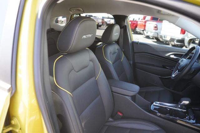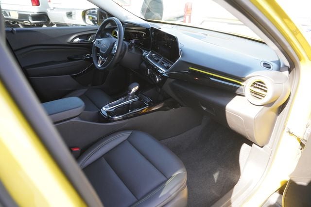 This 2024 Chevrolet Trax ACTIV in Nitro Yellow Metallic comes with the following features: 1.2L Ecotec Turbo DOHC DI w/VVT 6-Speed Automatic FWD Driver Confidence Package (Adaptive Cruise Control, Lane Change Alert w/Side Blind Zone Alert, and Rear Cross-Traffic Alert), License Plate Front Mounting Package, Preferred Equipment Group 1SA, Trax ACTIV, 4D Sport Utility, 1.2L Ecotec Turbo DOHC DI w/VVT, 6-Speed Automatic, FWD, Nitro Yellow Metallic, Jet Black With Yellow Accents Leatherette, 2-Way Adjustable Front Head Restraints, 2-Way Power Driver Lumbar Seat Adjuster, 3.50 Final Drive Axle Ratio, 4-Way Manual Front Passenger Seat Adjuster, 4-Wheel Disc Brakes, 6 Speakers, 6-Speaker Audio System Feature, 8-Way Power Driver Seat Adjuster, ABS brakes, Air Conditioning, Alloy wheels, AM/FM radio: SiriusXM, Auto High-beam Headlights, Automatic temperature control, Brake assist, Bumpers: body-color, Compass, Delay-off headlights, Driver door bin, Driver vanity mirror, Dual front impact airbags, Dual front side impact airbags, Electronic Stability Control, Emergency communication system: OnStar and Chevrolet connected services capable, Evotex Seat Trim, Exterior Parking Camera Rear, Front anti-roll bar, Front Bucket Seats, Front Center Armrest, Front reading lights, Front wheel independent suspension, Fully automatic headlights, Heated door mirrors, Heated Driver & Front Passenger Seats, Heated front seats, Heated steering wheel, Illuminated entry, Low tire pressure warning, Occupant sensing airbag, Outside temperature display, Overhead airbag, Overhead console, Panic alarm, Passenger door bin, Passenger vanity mirror, Power door mirrors, Power driver seat, Power steering, Power windows, Premium audio system: Chevrolet Infotainment 3, Radio data system, Radio: Audio System w/AM/FM, Rear Park Assist (DISC), Rear window defroster, Rear window wiper, Remote keyless entry, Security system, SiriusXM, Speed control, Split folding rear seat, Spoiler, Steering wheel mounted audio controls, Tachometer, Telescoping steering wheel, Tilt steering wheel, Traction control, Trip computer, Variably intermittent wipers, and Wheels: 18 Black-Painted Aluminum.