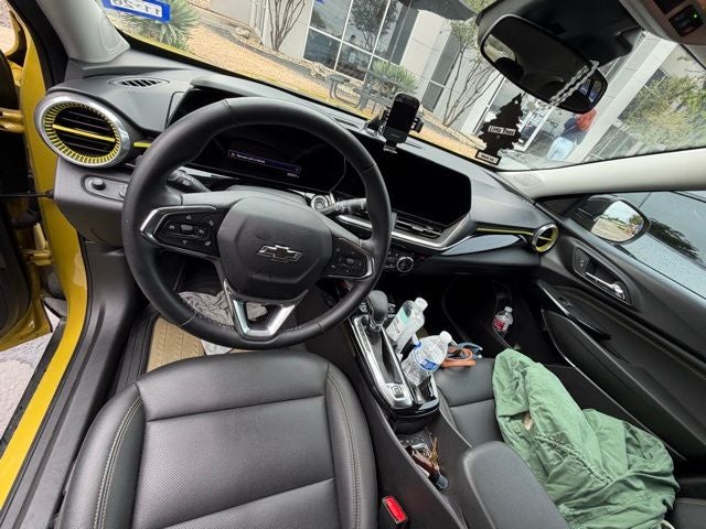 This 2024 Chevrolet Trax ACTIV in Nitro Yellow Metallic comes with the following features: 1.2L Ecotec Turbo DOHC DI w/VVT 6-Speed Automatic FWD Driver Confidence Package (Adaptive Cruise Control, Lane Change Alert w/Side Blind Zone Alert, and Rear Cross-Traffic Alert), License Plate Front Mounting Package, Preferred Equipment Group 1SA, 2-Way Adjustable Front Head Restraints, 2-Way Power Driver Lumbar Seat Adjuster, 3.50 Final Drive Axle Ratio, 4-Way Manual Front Passenger Seat Adjuster, 4-Wheel Disc Brakes, 6 Speakers, 6-Speaker Audio System Feature, 8-Way Power Driver Seat Adjuster, ABS brakes, Air Conditioning, Alloy wheels, AM/FM radio: SiriusXM, Auto High-beam Headlights, Automatic temperature control, Brake assist, Bumpers: body-color, Compass, Delay-off headlights, Driver door bin, Driver vanity mirror, Dual front impact airbags, Dual front side impact airbags, Electronic Stability Control, Emergency communication system: OnStar and Chevrolet connected services capable, Evotex Seat Trim, Exterior Parking Camera Rear, Front anti-roll bar, Front Bucket Seats, Front Center Armrest, Front reading lights, Front wheel independent suspension, Fully automatic headlights, Heated door mirrors, Heated Driver & Front Passenger Seats, Heated front seats, Heated steering wheel, Illuminated entry, Low tire pressure warning, Occupant sensing airbag, Outside temperature display, Overhead airbag, Overhead console, Panic alarm, Passenger door bin, Passenger vanity mirror, Power door mirrors, Power driver seat, Power steering, Power windows, Premium audio system: Chevrolet Infotainment 3, Radio data system, Radio: Audio System w/AM/FM, Rear Park Assist (DISC), Rear window defroster, Rear window wiper, Remote keyless entry, Security system, SiriusXM, Speed control, Split folding rear seat, Spoiler, Steering wheel mounted audio controls, Tachometer, Telescoping steering wheel, Tilt steering wheel, Traction control, Trip computer, Variably intermittent wipers, and Wheels: 18 Black-Painted Aluminum.