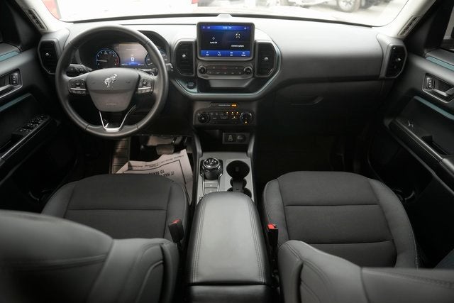 This 2024 Ford Bronco Sport Badlands in Shadow Black comes with the following features: EcoBoost 2.0L I4 GTDi DOHC Turbocharged VCT 8-Speed Automatic 4WD Equipment Group 400A, Bronco Sport Badlands, 4D Sport Utility, EcoBoost 2.0L I4 GTDi DOHC Turbocharged VCT, 8-Speed Automatic, 4WD, Shadow Black, Ebony/Area 51 Cloth, 3.80 Axle Ratio, 4-Wheel Disc Brakes, 6 Speakers, ABS brakes, Air Conditioning, Alloy wheels, AM/FM radio: SiriusXM, AM/FM Stereo, Auto High-beam Headlights, Automatic temperature control, Brake assist, Compass, Delay-off headlights, Driver door bin, Driver vanity mirror, Dual front impact airbags, Dual front side impact airbags, Electronic Stability Control, Emergency communication system: SYNC 3 911 Assist, Four wheel independent suspension, Front anti-roll bar, Front Bucket Seats, Front Center Armrest, Front fog lights, Front License Plate Bracket, Front reading lights, Fully automatic headlights, Heated door mirrors, Illuminated entry, Knee airbag, Low tire pressure warning, Occupant sensing airbag, Outside temperature display, Overhead airbag, Overhead console, Panic alarm, Passenger door bin, Passenger vanity mirror, Power door mirrors, Power driver seat, Power steering, Power windows, Radio data system, Rear anti-roll bar, Rear reading lights, Rear seat center armrest, Rear window defroster, Rear window wiper, Remote keyless entry, Security system, SiriusXM, Speed control, Speed-sensing steering, Speed-Sensitive Wipers, Split folding rear seat, Steering wheel mounted audio controls, SYNC 3 Communications & Entertainment System, Tachometer, Telescoping steering wheel, Tilt steering wheel, Traction control, Trip computer, Unique Style Cloth Sport Contour Bucket Seats, Variably intermittent wipers, and Wheels: 17 Carbonized Gray-Painted Aluminum.