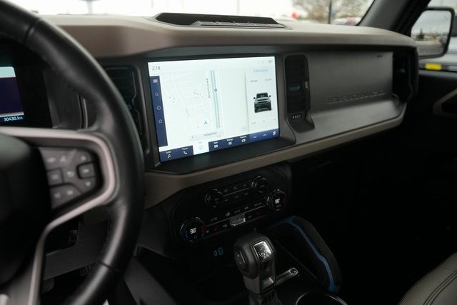 This 2024 Ford Bronco Wildtrak in Cactus comes with the following features: 2.7L EcoBoost V6 10-Speed Automatic 4WD Equipment Group 354A High/Lux Package (10 Speakers w/Subwoofer, 360-Degree Camera, Adaptive Cruise Control, Additional Sound Deadening, Evasive Steering Assist, Front Parking Sensors, Heated Steering Wheel, Information on Demand Panel, Radio: B&O Sound System by Bang & Olufsen, Sideview Mirrors, Universal Garage Door Opener, and Wireless Charging Pad), Bronco Wildtrak, 4D Sport Utility, 2.7L EcoBoost V6, 10-Speed Automatic, 4WD, Cactus, Black Leather, 4-Wheel Disc Brakes, 4.7 Axle Ratio, 7 Speakers, ABS brakes, Air Conditioning, Alloy wheels, AM/FM radio: SiriusXM with 360L, AM/FM Stereo, Auto High-beam Headlights, Auto-dimming Rear-View mirror, Automatic temperature control, Brake assist, Brush Guard, Carbonized Gray Molded-In-Color Hard Top, Cargo Area Protector, Compass, Connected Navigation, Delay-off headlights, Driver door bin, Driver vanity mirror, Dual front impact airbags, Dual front side impact airbags, Electronic Stability Control, Emergency communication system: 911 Assist, Exterior Parking Camera Rear, Front anti-roll bar, Front Bucket Seats, Front Center Armrest, Front dual zone A/C, Front fog lights, Front License Plate Bracket, Front reading lights, Front Row Top Panels Storage Bag, Front wheel independent suspension, Fully automatic headlights, Hard Top Sound Deadening Headliner, Heated door mirrors, Heated front seats, Heated Leather-Trimmed/Vinyl Bucket Seats, Illuminated entry, Integrated roll-over protection, Leather Shift Knob, Low tire pressure warning, Navigation system: Connected Navigation, Occupant sensing airbag, Outside temperature display, Overhead airbag, Overhead console, Panic alarm, Passenger door bin, Passenger vanity mirror, Power door mirrors, Power steering, Power windows, Radio data system, Rear-Window Defroster & Washer, Remote keyless entry, Security system, SiriusXM Radio w/360L, Speed control, Split folding rear seat, Steering wheel mounted audio controls, SYNC 4, Tachometer, Telescoping steering wheel, Tilt steering wheel, Traction control, Trip computer, Variably intermittent wipers, Voltmeter, and Wheels: 17 Black High Gloss-Painted Aluminum.