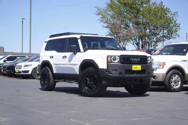 This 2025 Toyota Land Cruiser in Ice Cap comes with the following features: 2.4L 4-Cylinder 8-Speed Automatic 4WD 4D Sport Utility, 2.4L 4-Cylinder, 8-Speed Automatic, 4WD, Ice Cap, Java w/SofTex Synthetic Leather Seat Trim or Leather Seat Trim, 10 Speakers, 4-Wheel Disc Brakes, ABS brakes, Air Conditioning, Alloy wheels, AM/FM radio: SiriusXM, Apple CarPlay/Android Auto, Auto High-beam Headlights, Auto-dimming Rear-View mirror, Automatic temperature control, Brake assist, Compass, Delay-off headlights, Driver door bin, Driver vanity mirror, Dual front impact airbags, Dual front side impact airbags, Electronic Stability Control, Emergency communication system: Safety Connect (up to 10-year trial subscription), Exterior Parking Camera Rear, Front anti-roll bar, Front Bucket Seats, Front Center Armrest, Front dual zone A/C, Front fog lights, Front reading lights, Front wheel independent suspension, Fully automatic headlights, Garage door transmitter: HomeLink, Heated & Ventilated Front Seats, Heated door mirrors, Heated front seats, Heated steering wheel, Illuminated entry, Knee airbag, Leather Shift Knob, Leather steering wheel, Low tire pressure warning, Navigation system: Drive Connect Cloud Navigation (1-year trial subscription), Occupant sensing airbag, Outside temperature display, Overhead airbag, Overhead console, Panic alarm, Passenger door bin, Passenger vanity mirror, Power door mirrors, Power driver seat, Power Liftgate, Power steering, Power windows, Radio data system, Radio: Toyota Audio Multimedia System, Rain sensing wipers, Rear air conditioning, Rear anti-roll bar, Rear reading lights, Rear seat center armrest, Rear window defroster, Rear window wiper, Remote keyless entry, Security system, SofTex Synthetic Leather Seat Trim, Speed control, Speed-sensing steering, Split folding rear seat, Spoiler, Steering wheel mounted audio controls, Telescoping steering wheel, Tilt steering wheel, Traction control, Trip computer, Turn signal indicator mirrors, Variably intermittent wipers, Ventilated front seats, and Wheels: 18 x 7.5J Matte Gray Alloy.